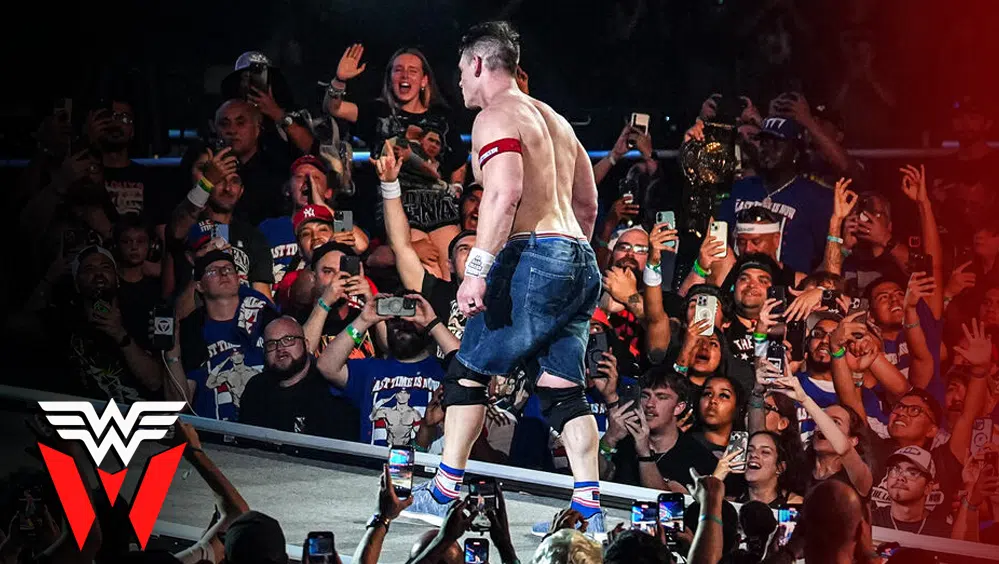 From there, it became a war of big moves — Rhodes hit a Bionic Elbow and a piledriver, Cena responded with multiple Attitude Adjustments, including one through the announce table and another from the stage ramp after carrying Rhodes up an elevator shaft.